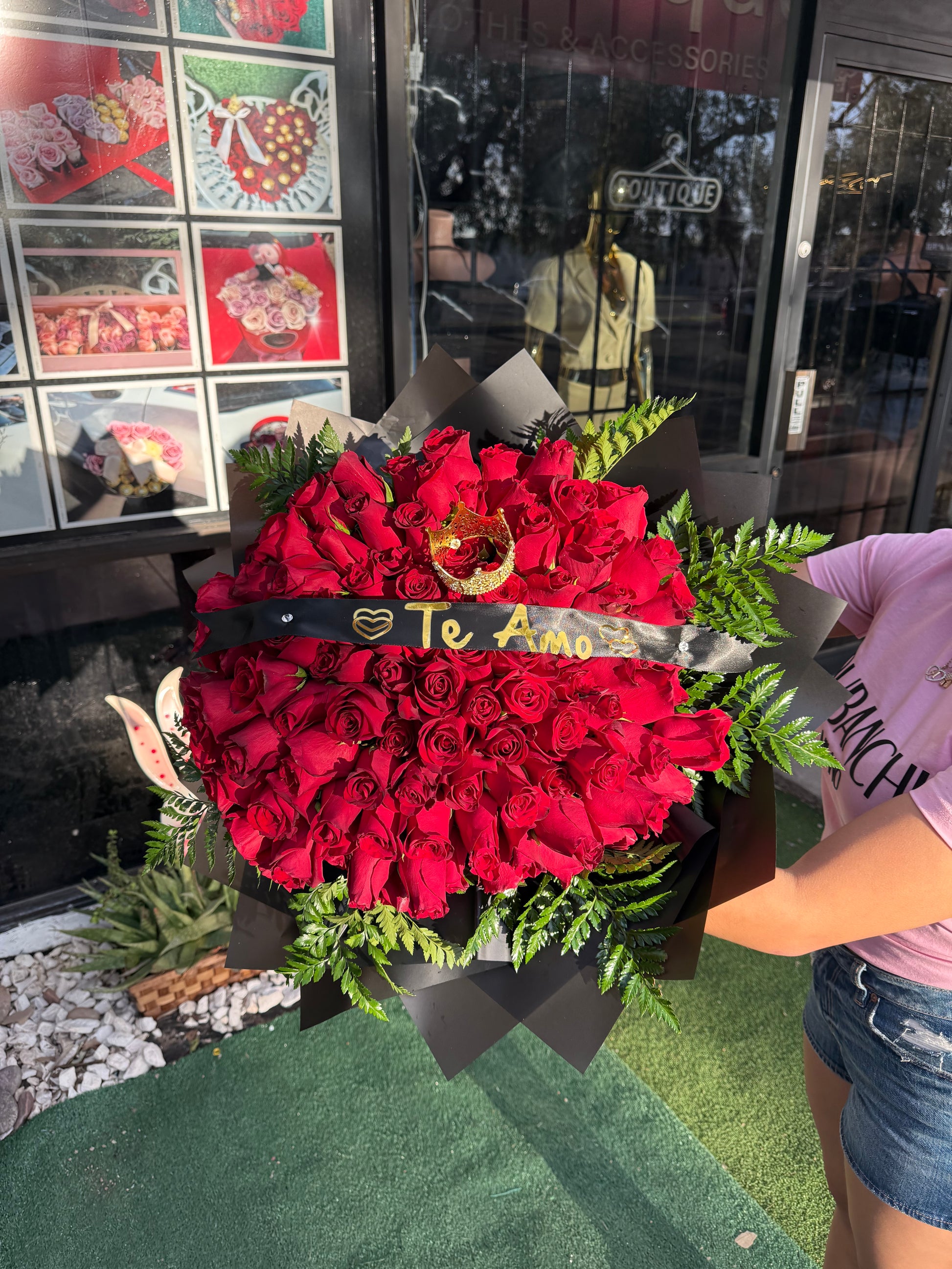 100 Roses Wrapped Bouquet with crown and Ribbon